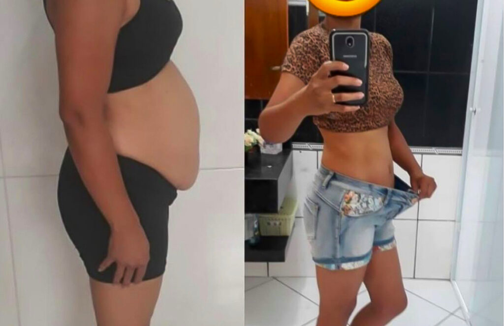 “Preciso dizer que estou muito feliz, essa calça enrolava na barriga e em 4 meses está frouxa!”